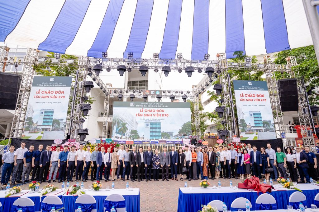 Sáng ngày 15/9/2025, Trường Đại học Xây dựng Hà Nội (HUCE) đã long trọng tổ chức Lễ khai giảng năm học 2025 – 2026 và chào đón Tân sinh viên K70. Sự kiện diễn ra trong không khí hân hoan, mở ra hành trình mới với nhiều khát vọng và hoài bão của một thế hệ trẻ năng động và sáng tạo.
